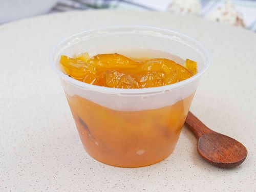 Frescas frutas de papayuelas bañadas en su almíbar